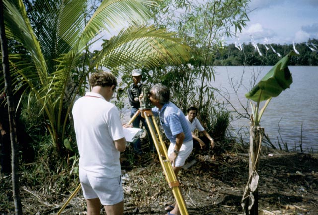 I think that these pictures were taken in Sarawak where the crew was about to move to. Notice Taffy caught in a rare surveying moment...