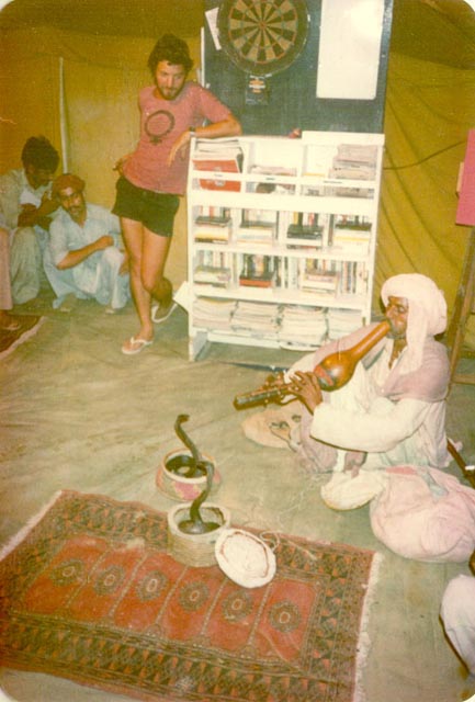 The camp move from the Punjab (Shell) to Baluchistan (BP) took 4 days and we all drove something or other. Our route took us across the Sukkur barrage, built by the British, and we then spent the night in Sukkur. I have been to Sukkur recently and a new bridge has been built just to the south of the barrage. The picture on the left was taken from the top of a minaret, attached to a mosque. The door-keeper really didn't want to let us go up but eventually agreed as long as we didn't take any photographs! We also wandered around the town and picked up quite a following.
