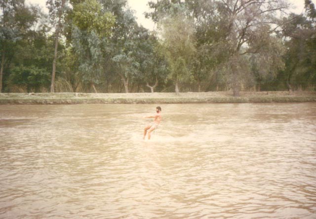 A favourite pastime on this crew was water skiing. Subtly different to normal water skiing in that the skier remains stationery whilst the water moves. That's Dave Auger in the right hand picture.